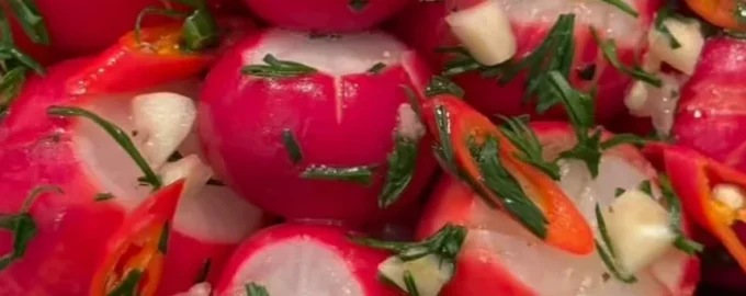 Тъй като сега е сезонът на домашно приготвените репички, това е добър момент да добавите този ранен пролетен зеленчук към менюто си. Видеоклип с мариновани репички стана вирусен в социалните мрежи и много домакини вече са изпробвали тази тенденция в кухните си. Кулинарният блогър Кристин Азизян сподели изпитана рецепта за мариновани репички. Тя се приготвя бързо и лесно и се оказва невероятно вкусна и ароматна.