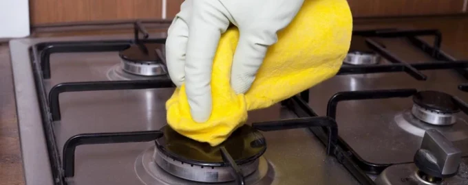 Ако не знаете как да почистите старата лепкава мазнина и загорели остатъци от храна, по-добре е да ги третирате с оцет и да поръсите със сода за хляб. След това покрийте мястото с влажна кърпа и след 15 минути отстранете мръсотията с обикновена кухненска гъба. Обърнете специално внимание на горелките – остатъците от почистващи препарати могат да влошат работата им.