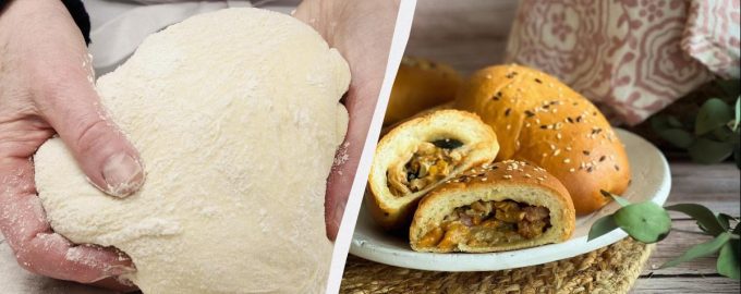 По този начин могат да се приготвят както сладки, така и солени продукти. За рецептата е по-добре да се купи прясна мая, за да се постигне максимална реакция.