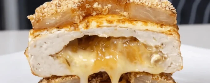 Какво по-хубаво от крехък котлет с разтопено сирене и сладки нотки на карамелизиран лук и ананас. Перфектна е за романтична вечеря или празничен обяд.