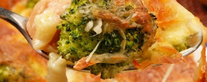 Пригответе здравословна запеканка, в която броколите хармонично се съчетават с червена риба, а пълнежът от яйца и сметана ще направи ястието нежно и сочно.