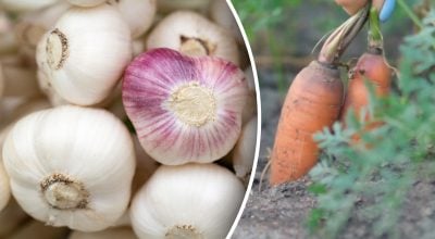 Това е една от най-добрите комбинации. Чесънът прикрива миризмата на морковите и отблъсква морковената муха – основният враг на кореноплодния зеленчук.