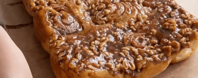Оставете да се охлади леко и се насладете. Тези кифлички са повече от десерт. Всяка порция съчетава меко тесто, аромат на канела и хрупкави карамелизирани ядки – идеалният завършек на студена сутрин или вечер.