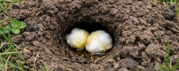 – Намерете свеж проход (дупка на къртица) и внимателно отстранете горния слой почва. – Вземете малки парчета парцал или памучни дискове. – Навлажнете ги обилно рициново масло или катран. – Поставете ги дълбоко в тунела, като внимавате да не покриват напълно прохода. – Покрийте дупката с торф, за да концентрирате миризмата вътре в лабиринта.