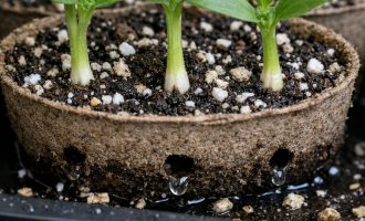 Първо напръскайте чиста вода (около 3-4 кофи) обилно върху лехата за семена.