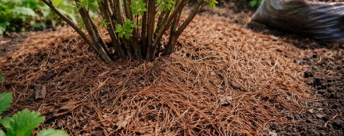 Разпределете игличките равномерно на 5 см от централния ствол на храста.