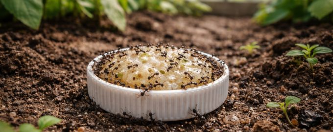 Разпределете сместа върху малки подложки (капачки от бутилки или парчета картон) в близост до входовете на мравуняците.