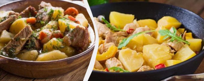 Задушени картофи с месо – идеален вариант за обяд или вечеря. Освен това такова ястие може да се приготви предварително и то не губи абсолютно нищо от вкуса си. Бюджетно и много питателно, то може да бъде приготвено дори от начинаещи в кулинарията, но може да бъде направено и още по-привлекателно.