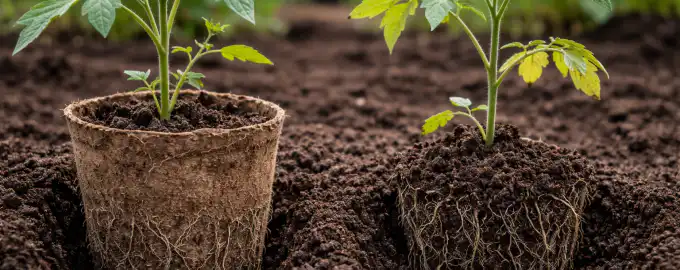 При засаждане в земята стените на саксията служат като допълнителен органичен тор.