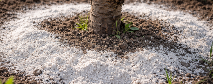 Разпръснете праха около подложката в радиус на короната.