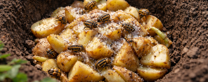 Същността на метода е да се създаде центрове за изкуствено хранене. Гладният бръмбар след зимен сън е изключително чувствителен към миризмата на пресен сок от нощница. За да създадете капани, ще ви трябват обикновени обелени или нарязани картофени клубени, които трябва да се подготвят предварително.