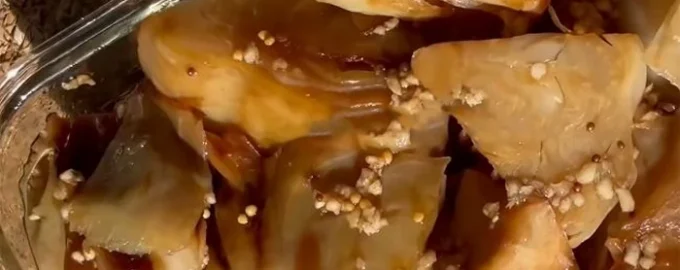 - Нарежете главата зеле на 6 парчета и я сложете в ръкав за печене. Печете във фурна на 200 градуса в продължение на 2 часа.