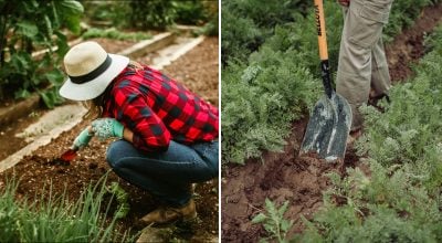 За да се справят с уплътнената почва, градинарите препоръчват да се използва широка вила за разрохкване на почвата.
