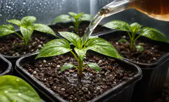 Разпръснете сместа само върху сухата почва около всеки разсад.