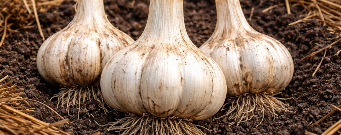 Три седмици преди прибирането на реколтата спрете напълно поливането, за да позволите на чесъна да се „облече“ в твърда люспа.