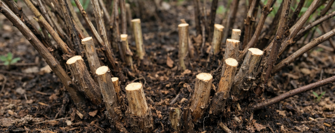 | Стар дебел клон | Отрязан „на пън“ | Растеж на нови силни издънки |