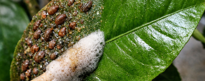 Ако сте забелязали лепкав депозит (сажди), това означава, че вече има голяма популация от щитоносни червеи. В този случай процедурата с маслото и сапуна трябва да се повтори поне два пъти в разстояние на една седмица. Това гарантира, че ще унищожите новите поколения насекоми, които може да са се излюпили от яйцата под черупките на мъртвите женски. Чистото растение ще расте бързо и скоро ще даде нови пъпки.