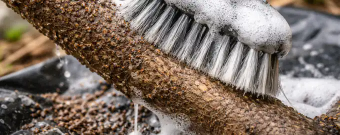 Основната тайна на ефективността се крие в предварителната обработка на кората с гъста пяна от катранен сапун, която омекотява черупките на вредителите преди почистването.
