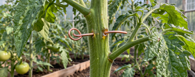 Всяка пролет собствениците на оранжерии се сблъскват със заплахата от фитофтороза и други гъбични инфекции, които могат да убият разсада им за броени дни. Вместо да се използват агресивни химикали, има един десетилетен метод за защита на растенията, при който се използва обикновено парче мед. Пробиването на стъблата с медна тел задейства естествените защитни механизми на доматите и пипера, като им осигурява надежден вътрешен имунитет за целия предстоящ сезон.