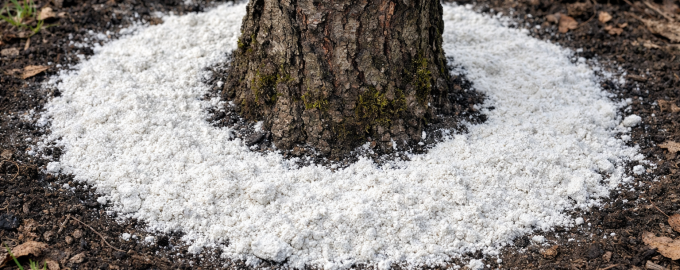 Разпределете минералния прах равномерно по целия периметър на кореновата система