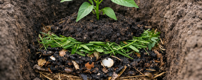 Трябва да използвате правилните съставки, за да създадете подходяща хранителна среда на дъното на ямата: – прясно окосена трева или коприва – шепа дървесна пепел за дезоксидиране – малко хумус или зрял компост – слой обикновена пръст за изолиране на корените от горящата органична материя