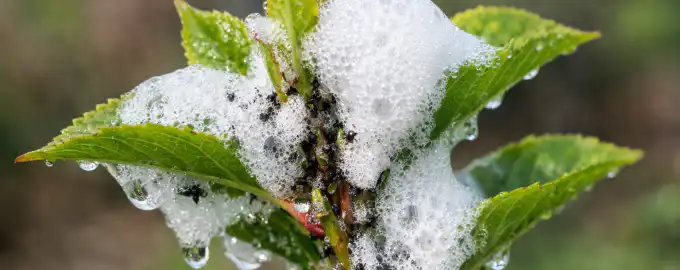 Опитайте се да избягвате пръскането с гъста пяна върху вече отворени пъпки, за да не изплашите случайно полезните опрашващи насекоми.