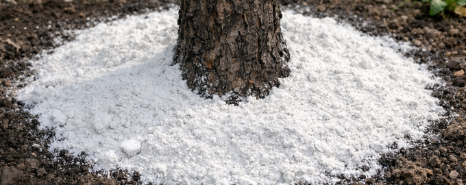 Разпръскване на праха Прахът трябва да се разпръсне по цялата площ на граничния кръг, като се наблегне на ширината на короната. Това е мястото, където се намира по-голямата част от подхранващите корени.