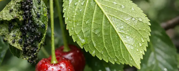 За да защитите черешовите дървета от колониите на черната черешова листна въшка, е необходимо комбинирано действие: едновременно пръскане на задната страна на листата с разтвор от пепел и сапун и блокиране на пътя на мравките чрез залепващи ленти върху ствола, което гарантира почистване на дървото за броени часове.