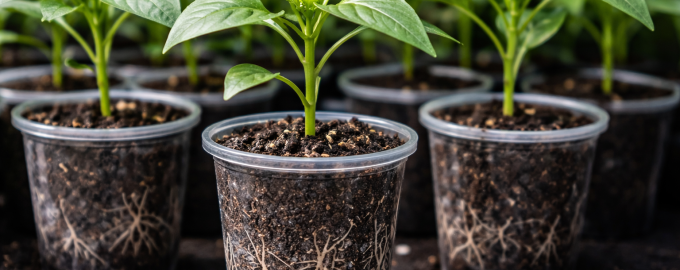 Тъмните контейнери задържат по-добре топлината, от която се нуждаят чушките, а прозрачните стени позволяват на производителя да следи визуално състоянието на кореновата система.
