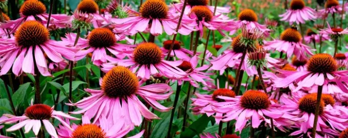 Ехинацеите са отлични, непретенциозни многогодишни растения за начинаещи градинари, тъй като са устойчиви на суша и топлина и осигуряват дълготрайни цветове в градината. „В допълнение към декоративната си стойност, ехинацеята е богата на антиоксиданти и се използва във фитотерапията от векове“, казва Сиърс.